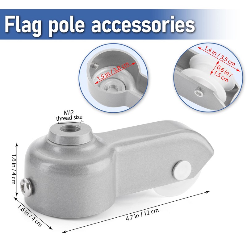 - ⭐ [All-in-one spare parts kit] This repair kit comes with a silver topper incl. pulley and screw, a white spare rope, a flagpole cleat hook to wind up the rope and 2 small carabiners to fix the flag