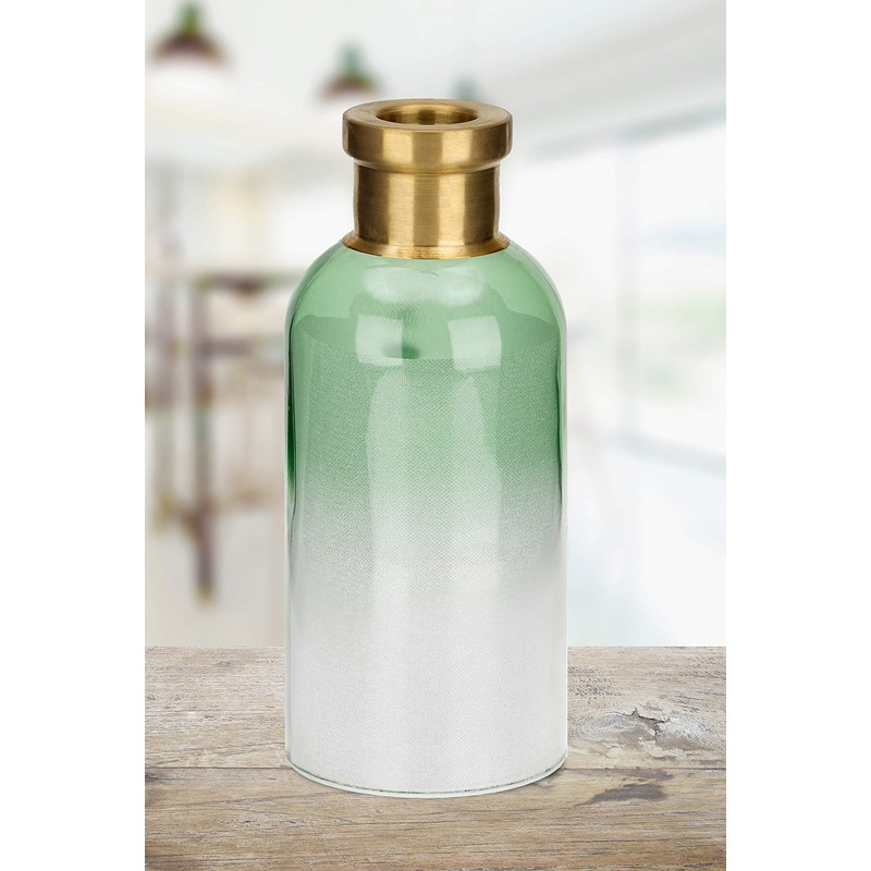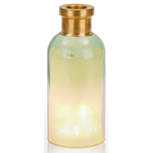 BRUBAKER Magic Light Bottle with 10 LED Stars 23 cm Height Green/Brass