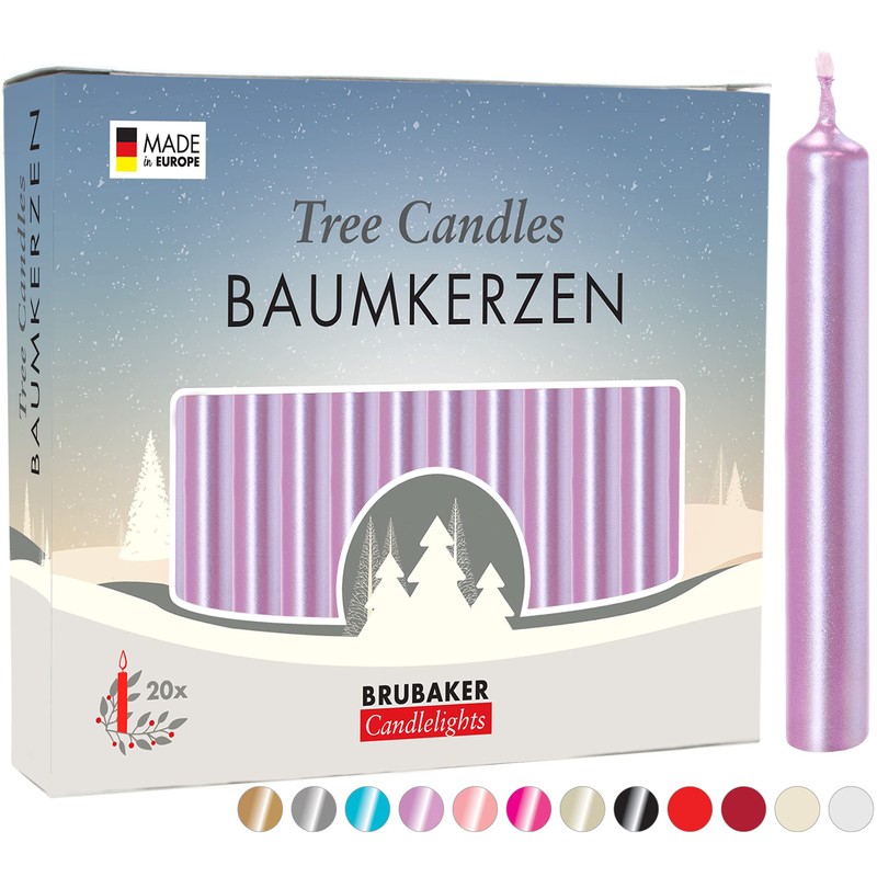 BRUBAKER Pack of 20 Wax Tree Candles, Christmas Candles, Pyramid Candles, Christmas Tree Candles, Lilac