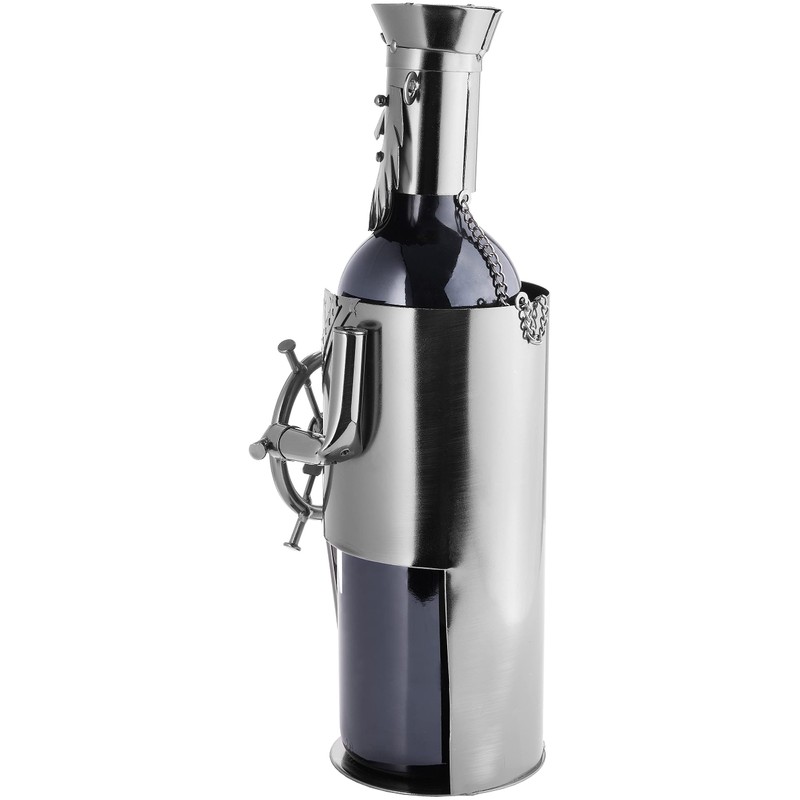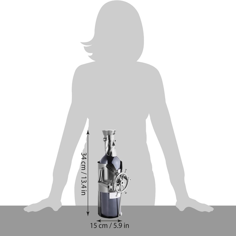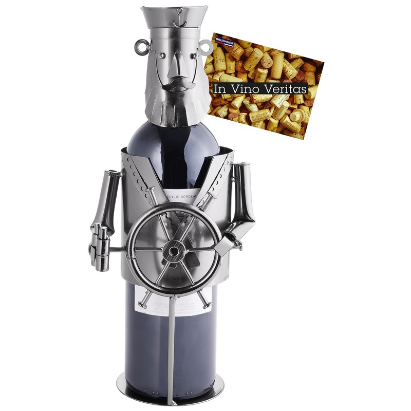 BRUBAKER Weinflaschenhalter Flaschenständer Kapitän Deko-Objekt Metall mit Grußkarte für Weingeschenk