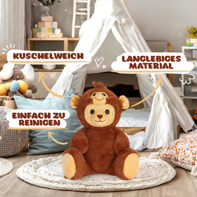 BRUBIES Teddy Monkey - 25 cm Teddy Bear in Monkey Costume with Hood - Plush Toy for Cuddly Adventures - Cuddly Toy Gift for Children