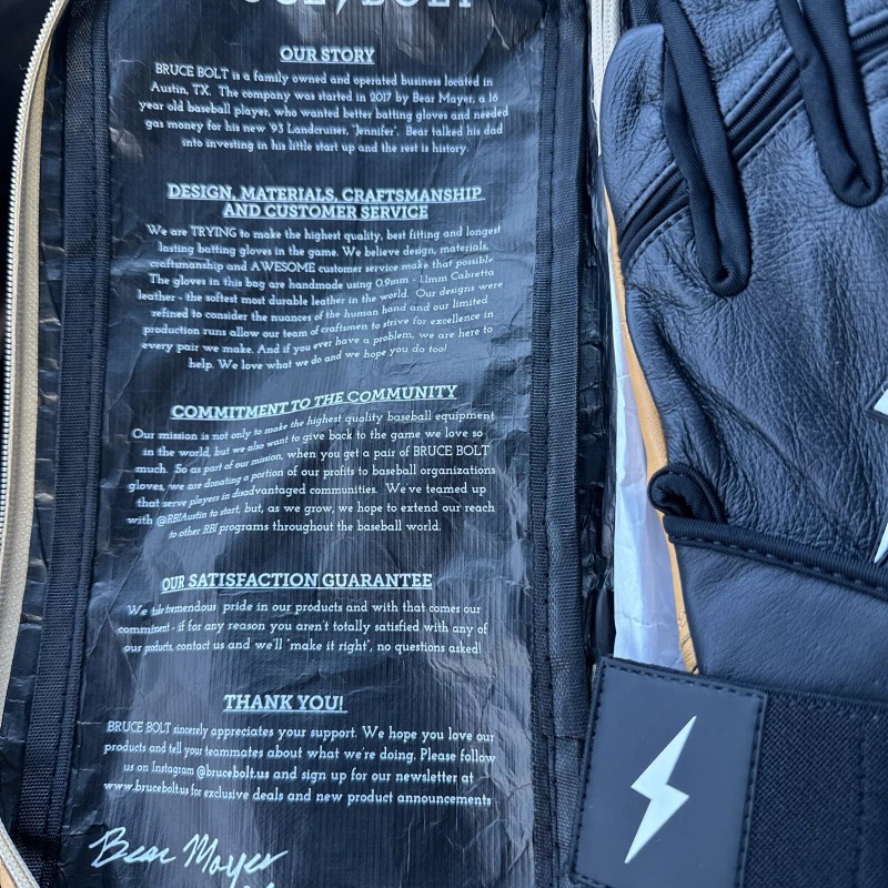 Perfect for advanced baseball players, these batting gloves are sold as a pair and are available in size L. Hand wash only, these gloves are California Prop 65 compliant and are not vintage. Get ready to hit some home runs with these stylish and functional gloves from BRUCE BOLT.