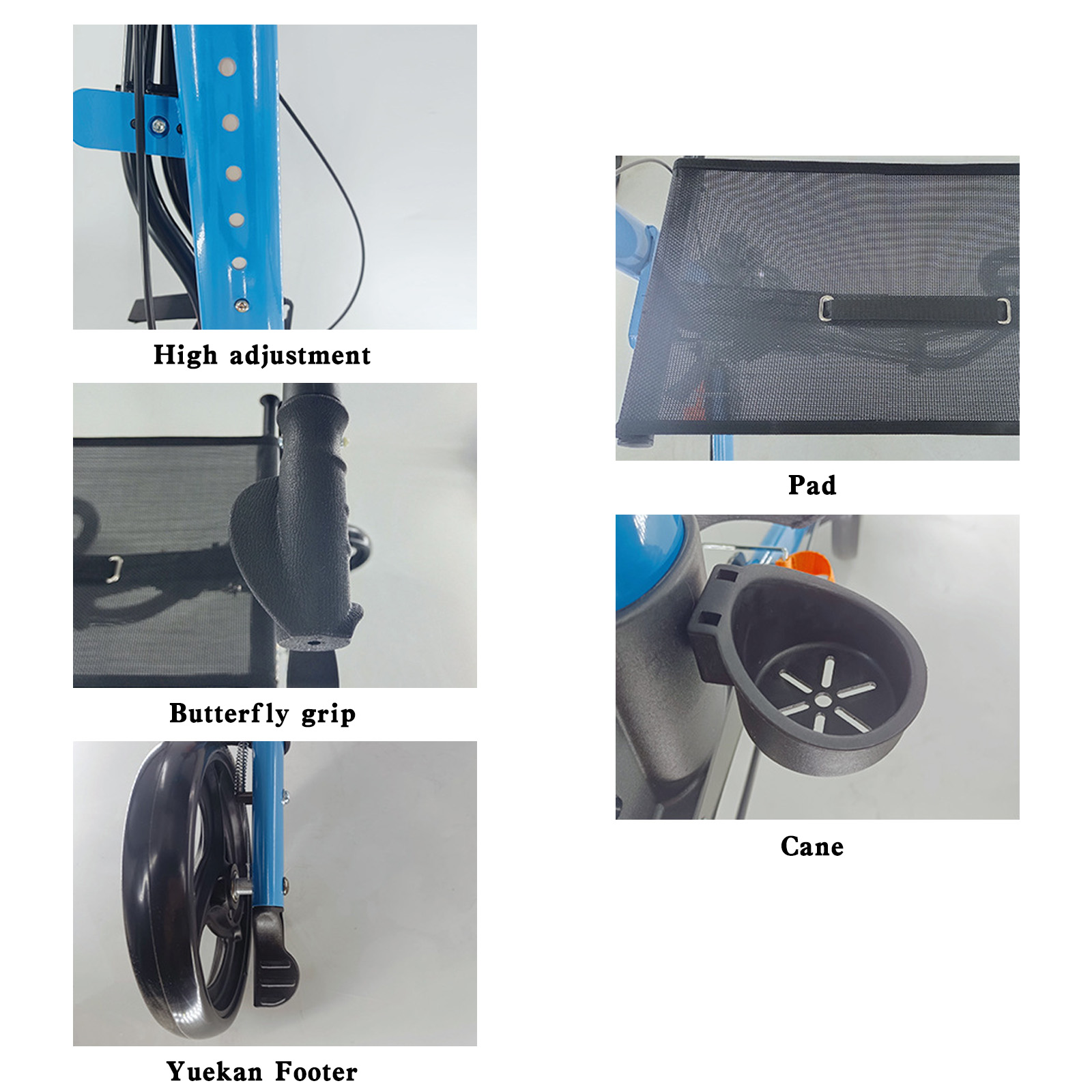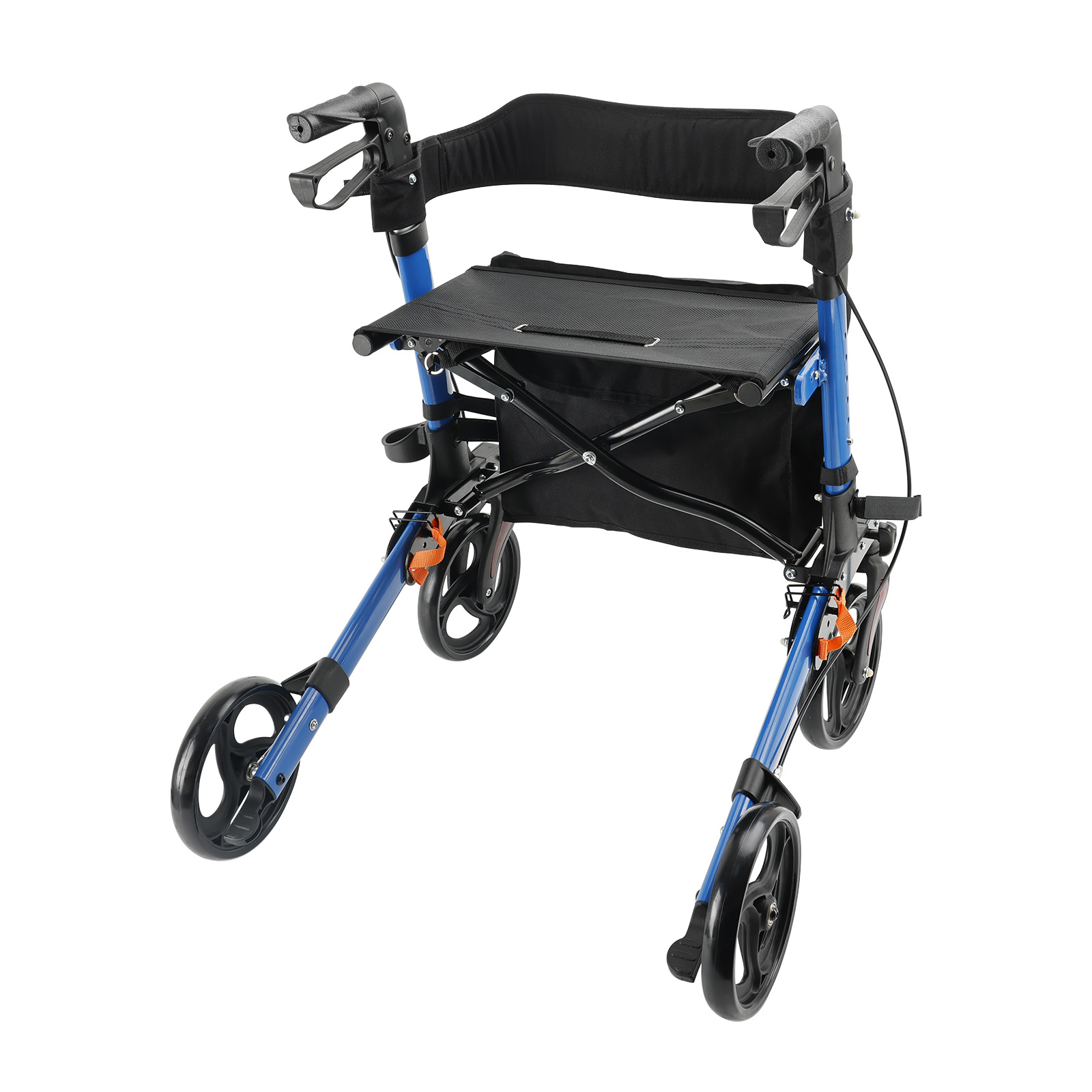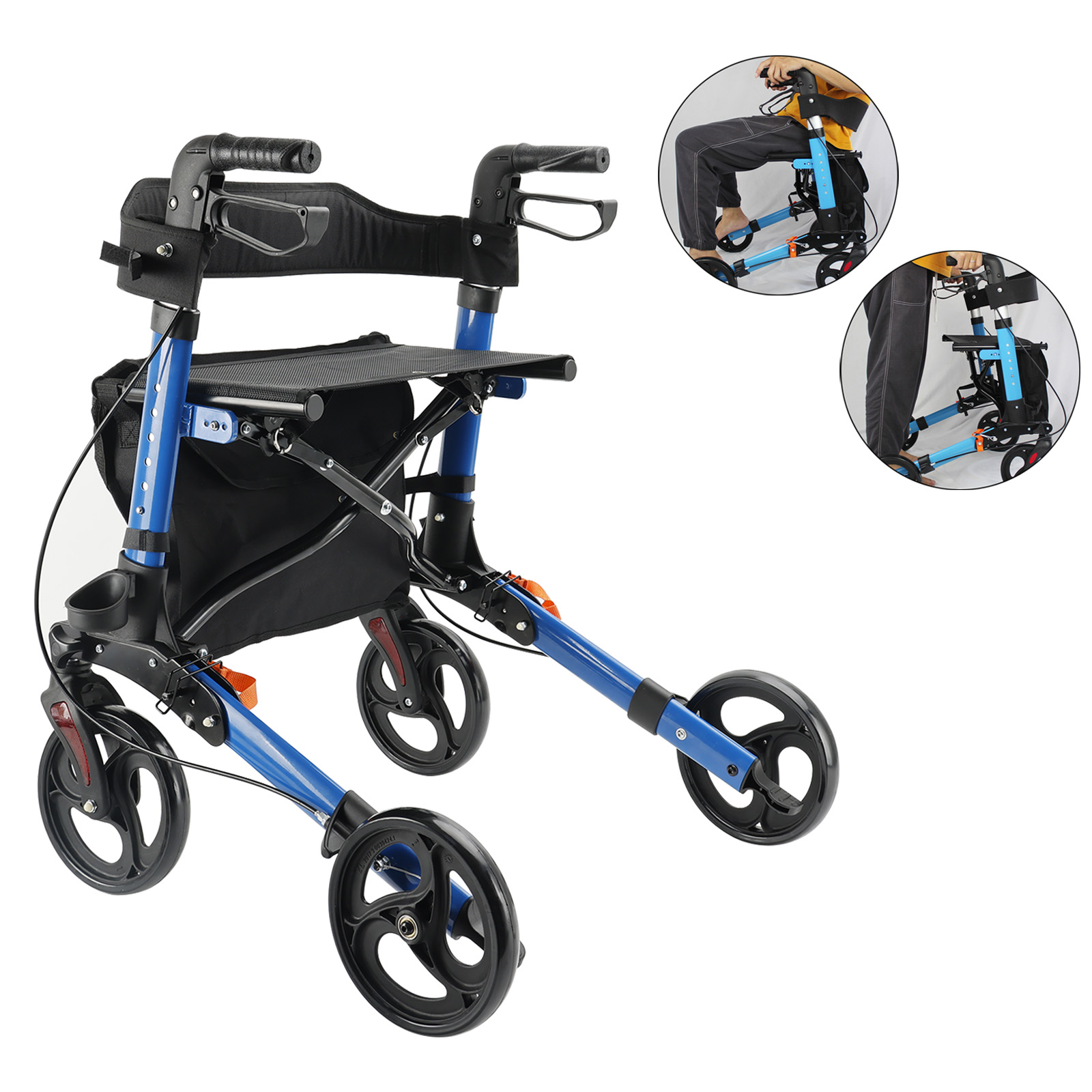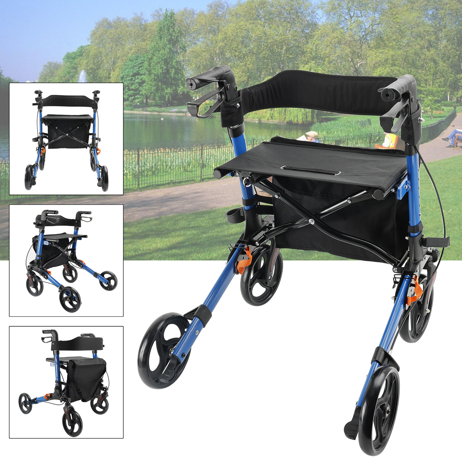 Compact Folding Design: This rollator walker for seniors is designed to transport and storage much more easier, fitting in the trunk of a car or even in the backseat. Just pull up the strap at the middle of the seat so that wider rollator walker can closes toward the center and help you walk through some narrow door.
