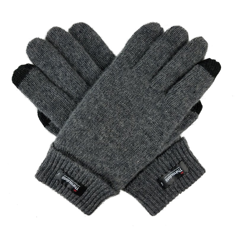 BRUCERIVER Men Pure Wool Knitted Gloves with Thinsulate Lining Size S/M (Grey Touchscreen)