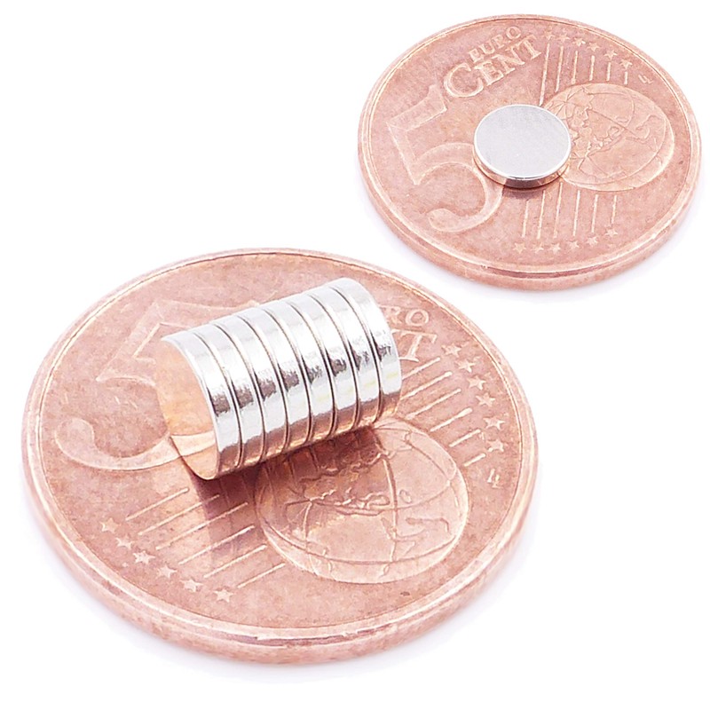 - Box contents: you will receive 10 neodymium magnets in disc shape (magnetic discs, flat magnets, flat and thin) with a size of 6 x 1 mm (diameter: 6 mm, height: 1 mm), in an elegant packaging. The small power miracles are also popular as a gift.