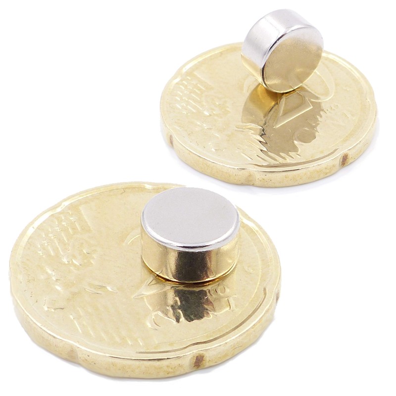 These tiny neodymium magnets have the highest magnetic holding force (N52). A neodymium magnet from Brudazon (8 x 4 mm) holds up to 2065 g. Magnets from Brudazon are ideal for household and office, workshop and DIY, model making and engines, creative and decorative, hobbies, crafts and school, kitchen and garden, experiments and magic, DIY - do it yourself, and much more. The surface of the high-gloss silver magnets is nickel-plated. We offer different sizes and shapes of neodymium magnets.
