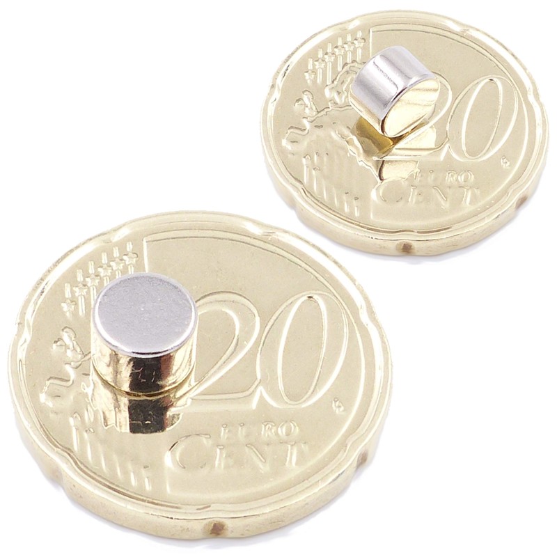 These tiny neodymium magnets have the highest magnetic holding force (N52). A neodymium magnet from Brudazon (6 x 4 mm) holds up to 1355 g. Magnets from Brudazon are ideal for household and office, workshop and DIY, model making and engines, creative and decorative, hobbies, crafts and school, kitchen and garden, experiments and magic, DIY - do it yourself, and much more. The surface of the high-gloss silver magnets is nickel-plated. We offer different sizes and shapes of neodymium magnets.