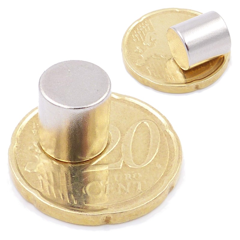 These tiny neodymium magnets have the highest magnetic holding force (N52). A neodymium magnet from Brudazon (8 x 8 mm) holds up to 2860 g. Magnets from Brudazon are ideal for household and office, workshop and DIY, model making and engines, creative and decorative, hobbies, crafts and school, kitchen and garden, experiments and magic, DIY - do it yourself, and much more. The surface of the high-gloss silver magnets is nickel-plated. We offer different sizes and shapes of neodymium magnets.