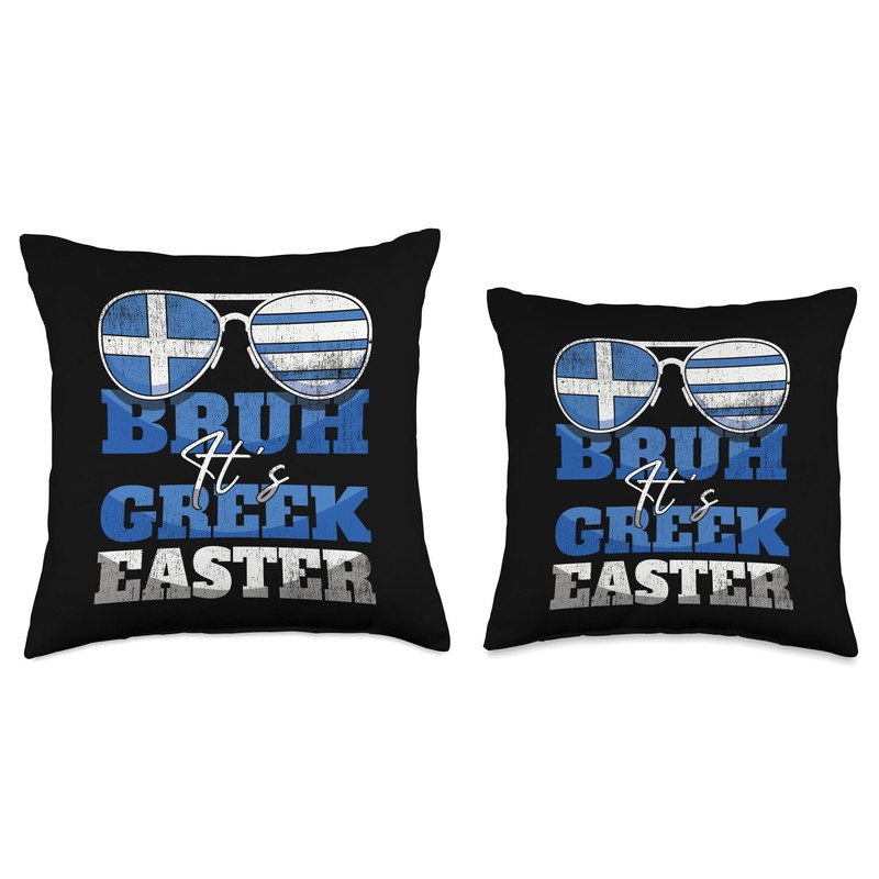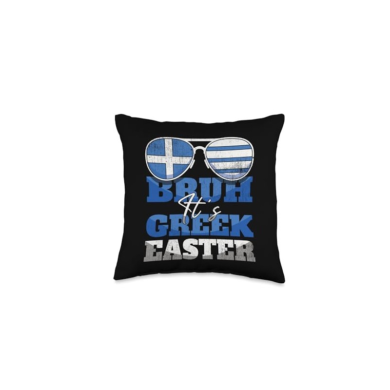 Bruh It's Greek Easter Holiday Greece Flag Greek Easter Throw Pillow