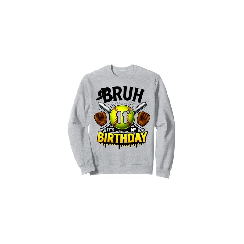 Bruh It's My 11st Birthday Softball Boys 11 Years Old Bday Sweatshirt