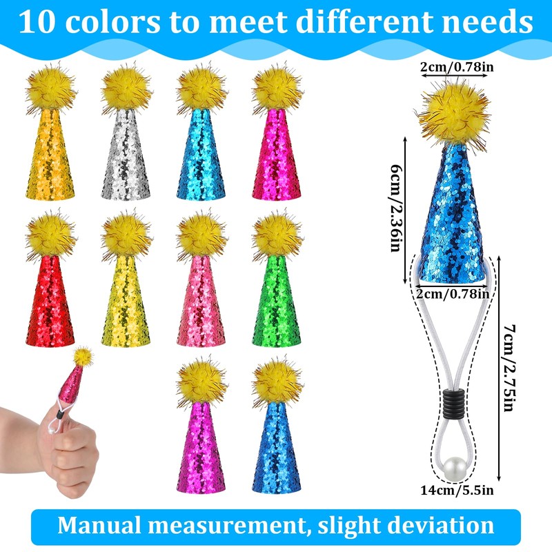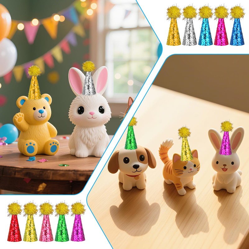 - Mini Party Hats: Available in 10 bright colors, these mini birthday hats are perfect for small animal models, such as hamsters, snakes, hedgehogs, etc. Great for birthdays, festivals, and creative DIY projects.