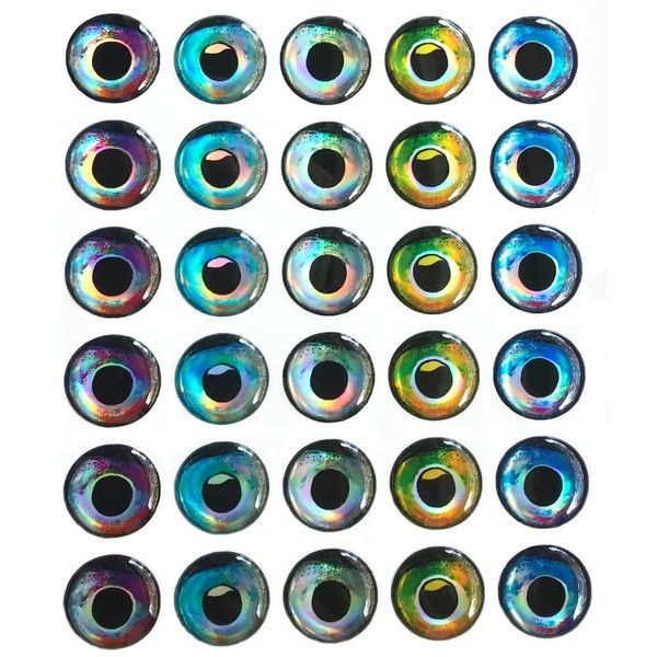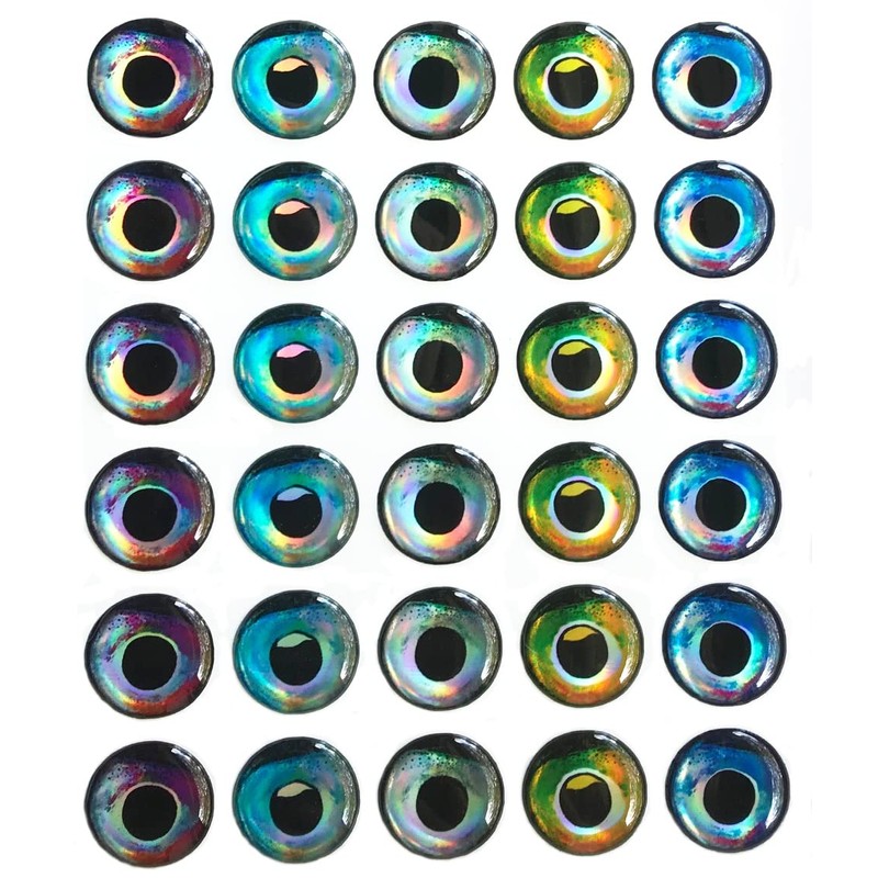 These 3D holographic eyes are extremely realistic with an ultra-clear, non-yellowing finish and a light-shifting, reflective film base. They really light up, which helps catch a fish's attention, but makes it challenging to accurately capture a "true" image as slight changes in viewing angle and light results in significantly different looks.