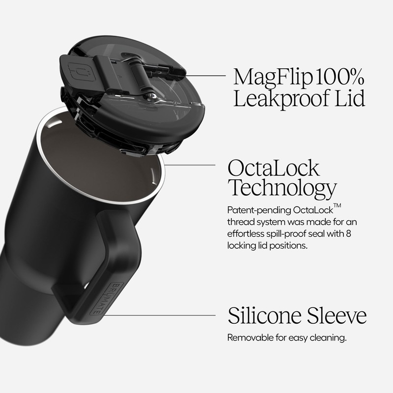• Cierre magnético: nuestra tecnología MagFlip utiliza potentes imanes de neodimio para ayudar a abrir la tapa y mantenerla abierta mientras se bebe un sorbo. Es 100 % hermético para bebidas calientes, frías y carbonatadas cuando se utiliza el cierre incorporado.