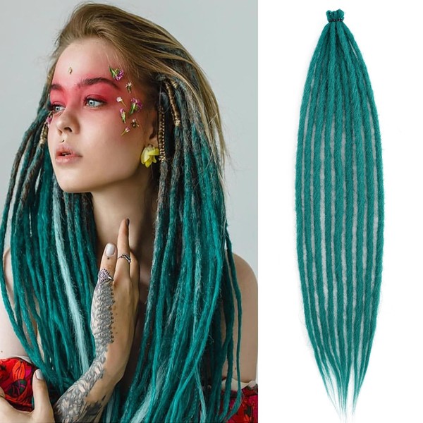 BRUNNACE Dreadlock Extensions 24inch Soft Crochet SE Dreads Reggae Style Synthetic Braiding Hair 10 Strands Handmade 0.6 cm Width Loc Extensions (24inch, Cyan)