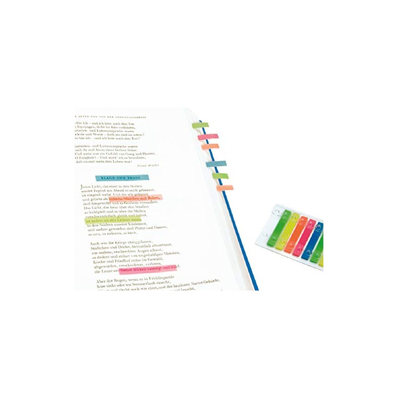 - 200 marker strips in neon colours blue, green, yellow, orange, pink