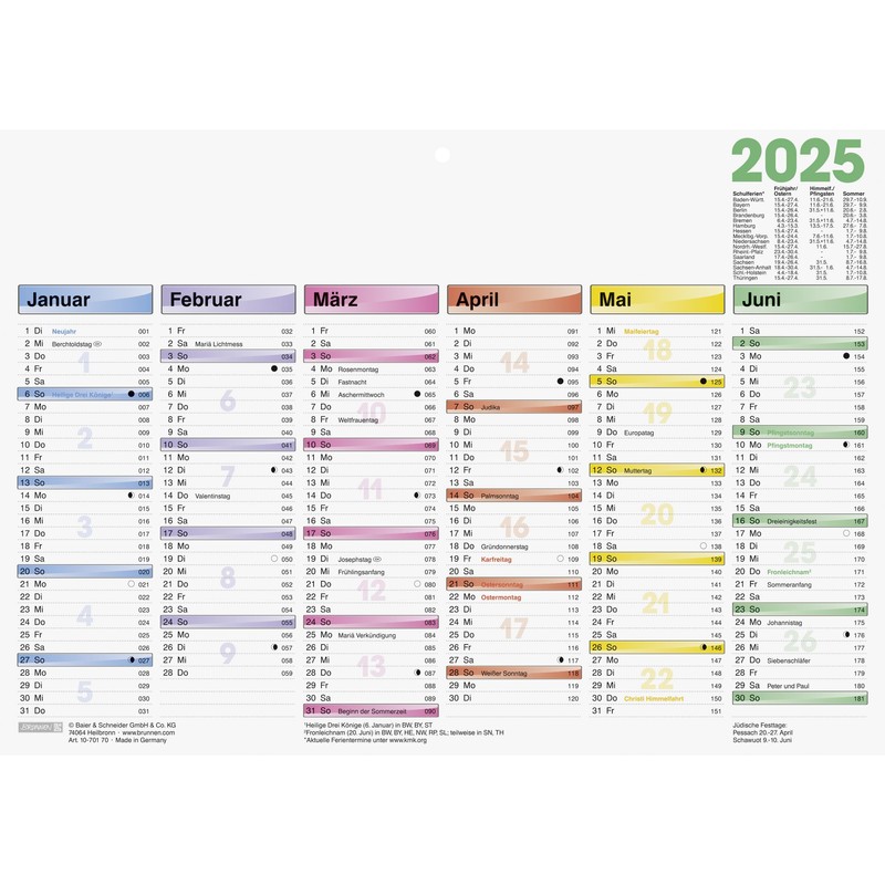 BRUNNEN DATAline Blackboard Calendar (2025), 1 Page = 6 Months, A4 Landscape