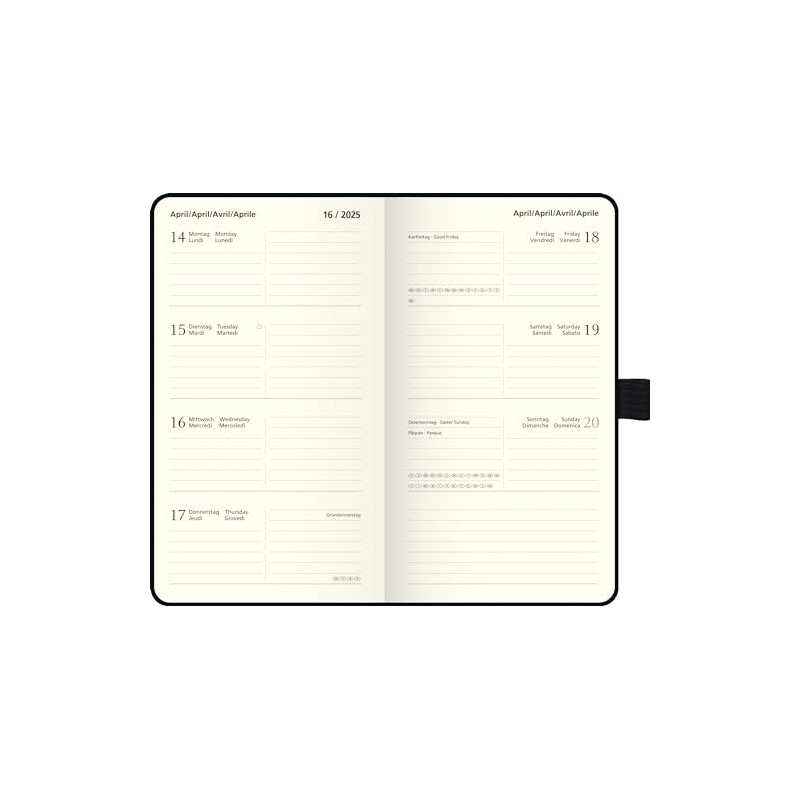 BRUNNEN Kompagnon Pocket Diary Model 756 66 (2025), 2 Pages = 1 Week, A6, 152 Pages, Baladek Cover, Black