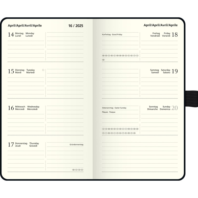 - Annual overview current year and following year, 12 pages monthly plan current year and following year, interchangeable address book, 16 pages