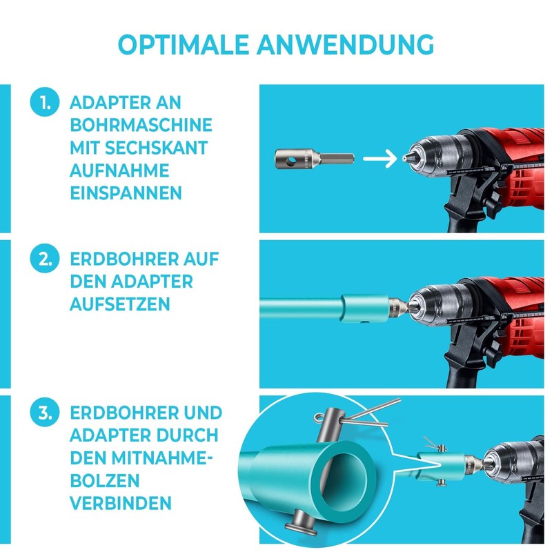 Brunnental ® Hexagonal Earth Drill Adapter + Quick Change Bolt for Hand Drill, Use Your Hammer Drill as Well Drill, Earth Drill Adapter for Drills with Diameter 40, 60, 80, 100, 120, 150 mm