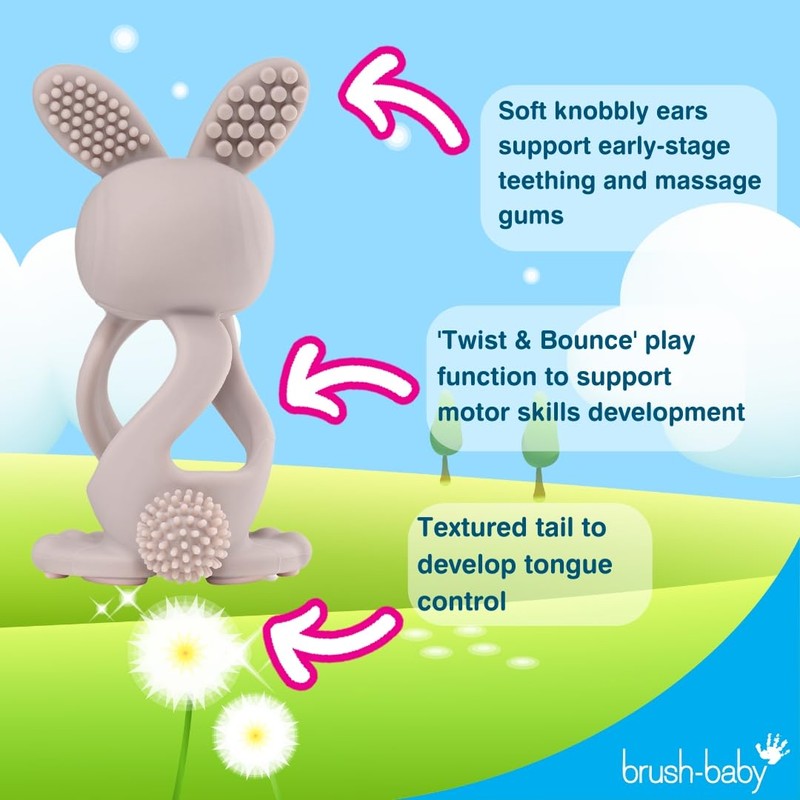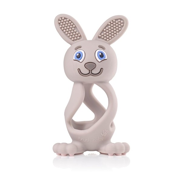 Brush Baby Bobbie Bunny Baby Teether Toy Cappuccino Grey | Twist & Bounce Teething Toy | 0-3 Years