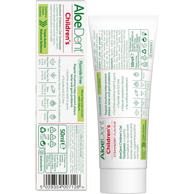 Directions: Brush twice daily with Aloe Dent Children's Toothpaste to support strong, healthy teeth and gums.