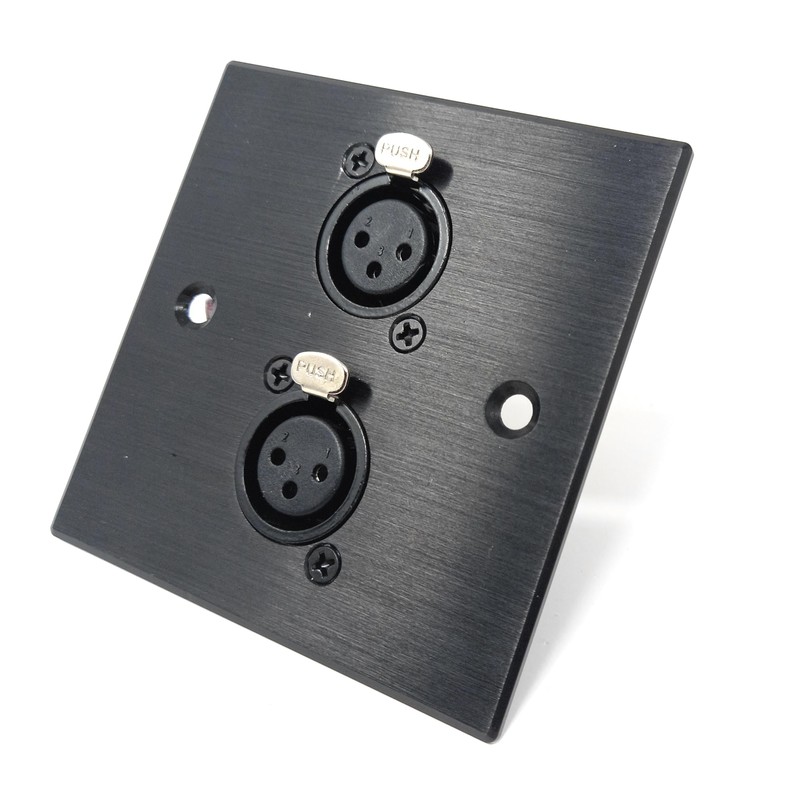 Brushed Aluminium Twin 3-Pin XLR Female Sockets D-Series Outlet Wall Faceplate – Durable Metal Plate for Audio, Amplifier, Microphone, Mixer, and Speaker Connections