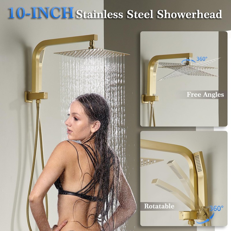 - 【Include】:10 inch Square rain shower head, handheld shower spray,59 inch shower hose,14 inch shower arm,handheld holder, pressure balance valve,panel,handle,cover and install hardware include.