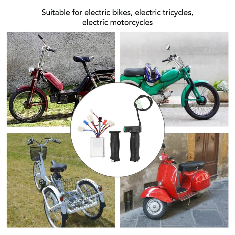 1、Excellent Heat Dissipation: The controller's housing can provide protection to the internal circuitry with excellent heat dissipation, thus avoiding security problems caused by thermal overload. 2、Aluminum Alloy Controller: The housing of our speed controller is made of aluminum alloy, which is very strong and can be achieved long term use. 3、Stable and Sensitive: Both the controller and grip can provide stable and sensitive speed control, allowing users to have better and comfortable operation. 4、Comfortable Grip: The grip is made of comfortable and soft rubber material, which makes the grip more comfortable and not tired for long riding. Easy to install, the interface will correspond to it. 5、Wide Range of Uses: Our controller grip set is widely applied to electric bikes, electric tricycles, electric motorcycles, etc.