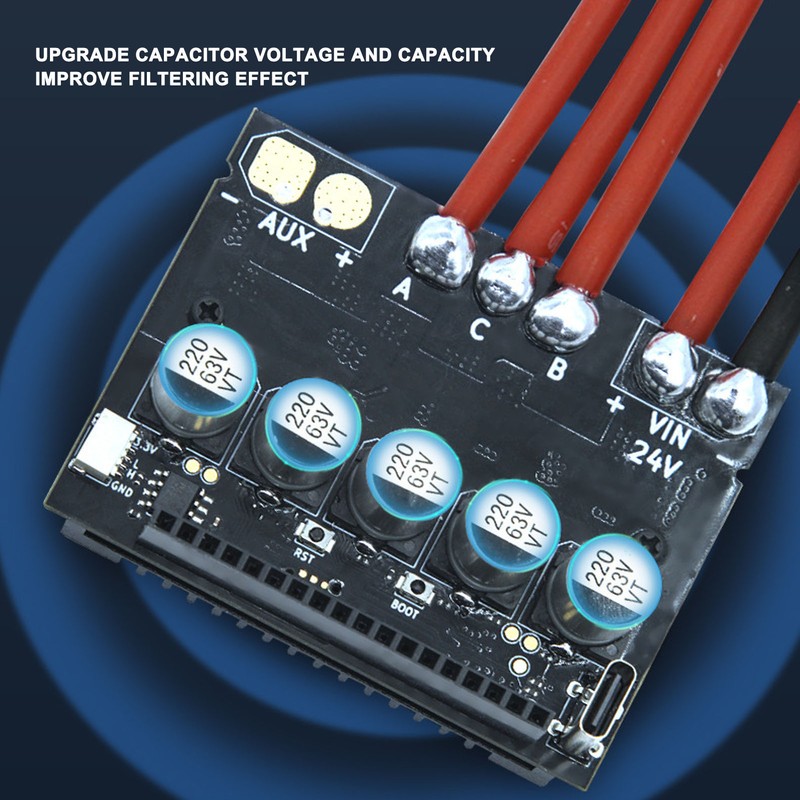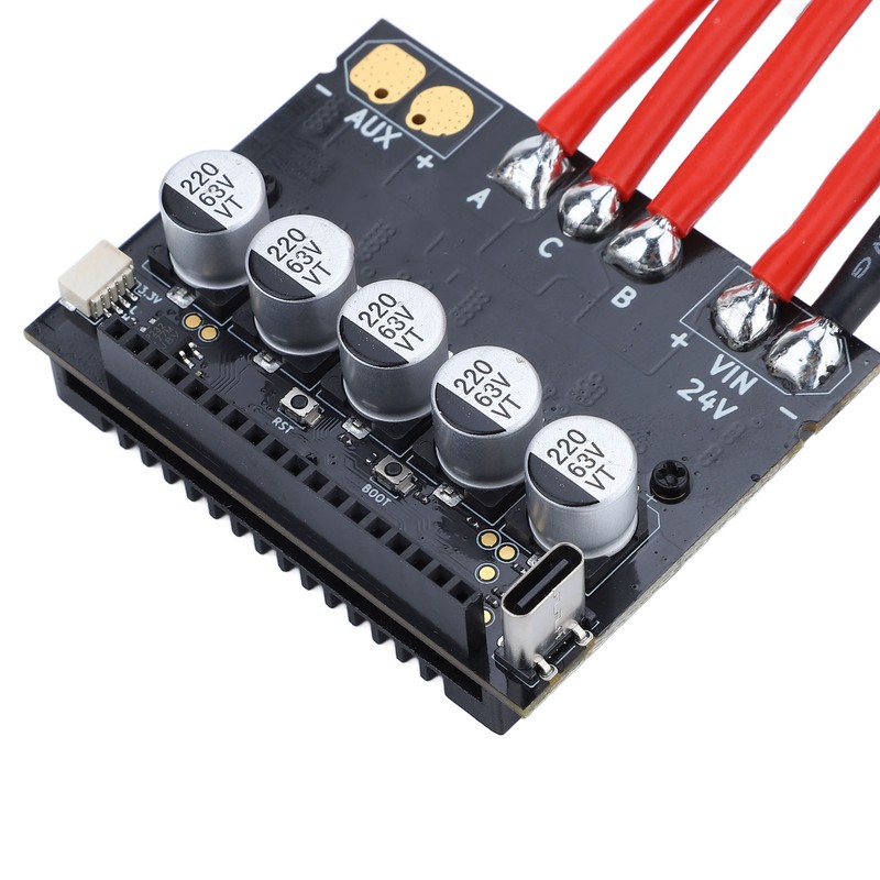 1、Position Control: With the use of encoder, it can also realize arbitrary torsion, speed loop, position loop, current loop, and position control based on trajectory planning, etc. 2、Motor Commissioning: The supporting USB connection to PC side can realize motor commissioning and complex multi directional axes control, which can realize FOC control for most brushless motors on the market. 3、Stable Performance: Our drivers are based on opening source projects for hardware optimization and enhancement, with stable performance and matching the factory firmware of the project. 4、Easy to Install: Our driver is small and light, very easy to install and easy to store when you are not using it, it will not take up much space. 5、Widespread Application: This driver can be widely applied to robots, robotic arms, 3D printing, CNC milling machines, ship models, car models and other DIY, industrial and automation fields.