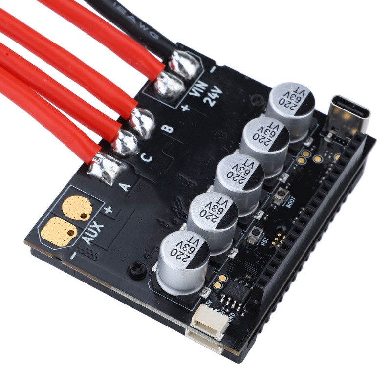 Communication Interface: USB protocol opening source (PC, for Raspberry Pi, ROS), UART (embedded devices), PWM (RC remote control), STEP/DIRECTION (PLC), GPIO, CAN, ANALOG INPUT