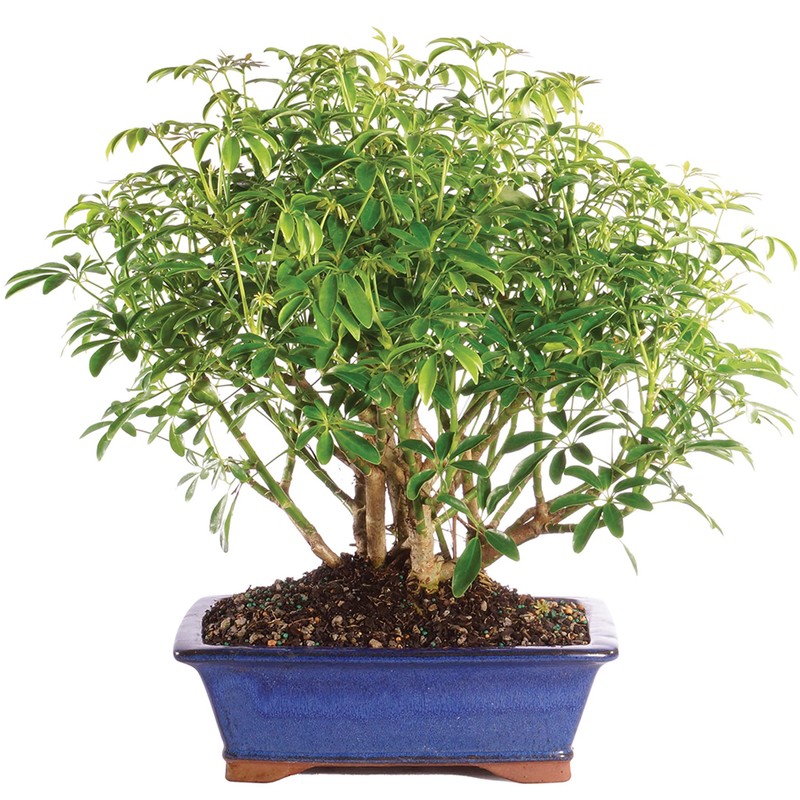 Brussel's Bonsai Live Hawaiian Umbrella Bonsai Tree - Large, 7 Year, 9 To 12 Inches Tall - Indoor Bonsai Tree With Ceramic Bonsai Pot