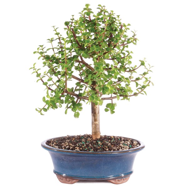 Brussel's Bonsai Live Dwarf Jade Bonsai Tree, Indoor - Large, 6 Years Old, 10 to 14 Inches Tall - Jade Tree in Decorative Ceramic Bonsai Pot