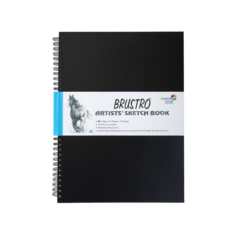 BRUSTRO Wiro Bound Artists Sketch Book, A3 Size, 120 Pages, 160 Gsm A3 Wiro