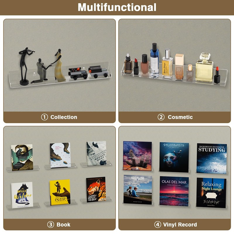 - 【Multiple functions】 These Clear Shelves for Wall aren't just for vinyl records! they're versatile storage wizards! From kids’ book to basketball cards, perfume bottles to picture frames, our shelves keep your treasures safe and sound with a front lip to prevent any sneaky falls. It's organization with a touch of magic
