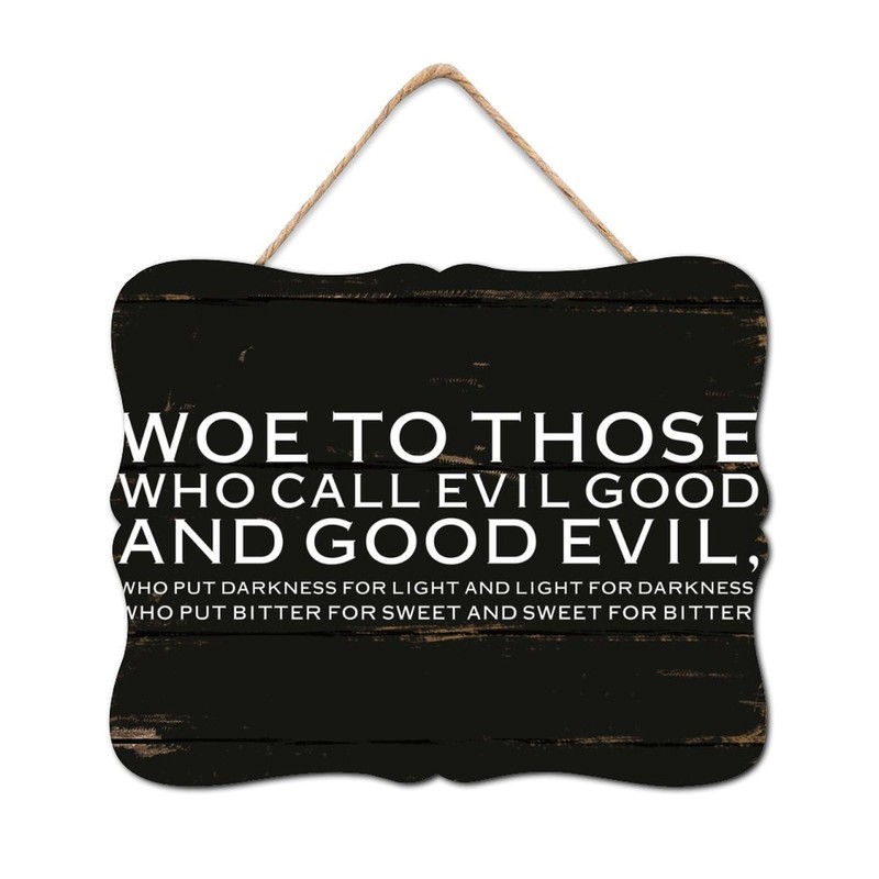 BRUYU5SE Woe to Those Who Call Evil Good And Good Evil Wooden Sign Wall Sign Retro Heart Warming Home Wall Decoration For Home Bedroom Living Room Bathroom 8x10in