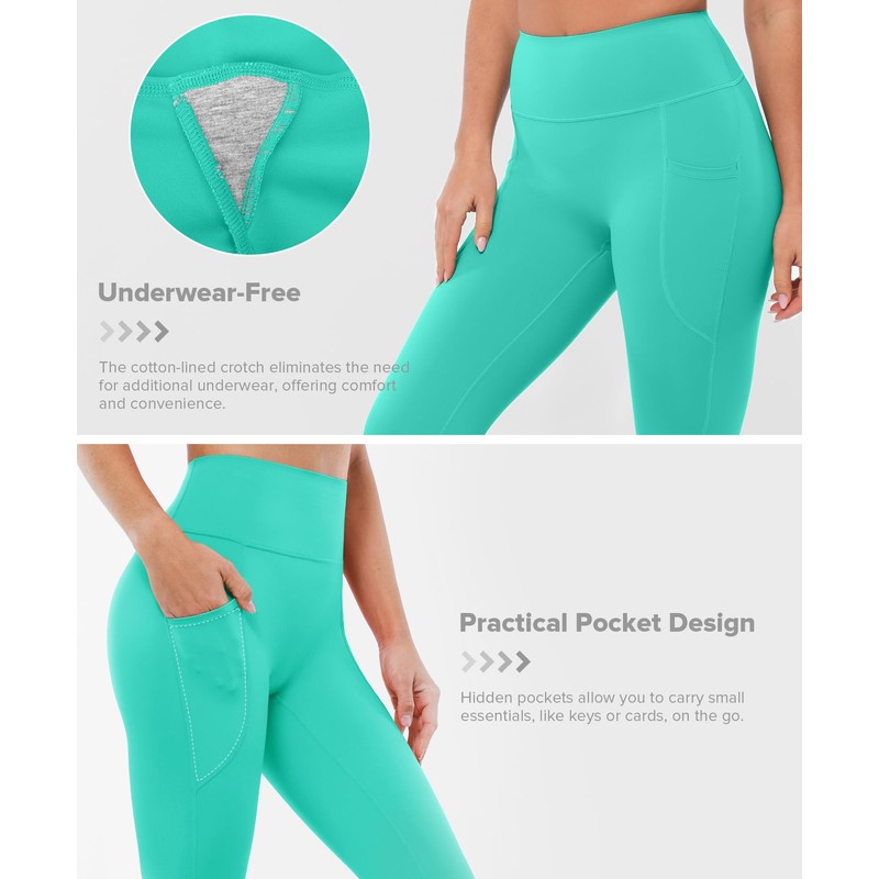 BRXL Womens High Waisted Yoga Athletic Leggings Tummy Control Compression Butter Workout Legging Pants Side Pockets Mint Green