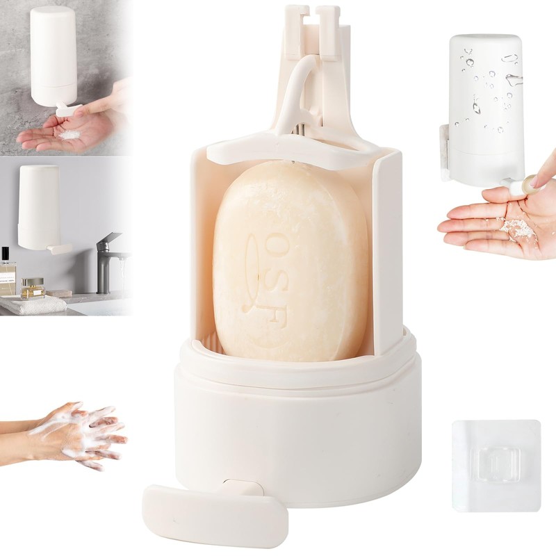 Bar Soap Dispenser, Soap Grinder for Bar Soap Wall-Mounted, Waterproof Soap Grinder for Bar Soap, Easy to Install & No Drilling for Bathroom, Kitchen, Hotel (One, White, NO SOAP, NO Desiccant)