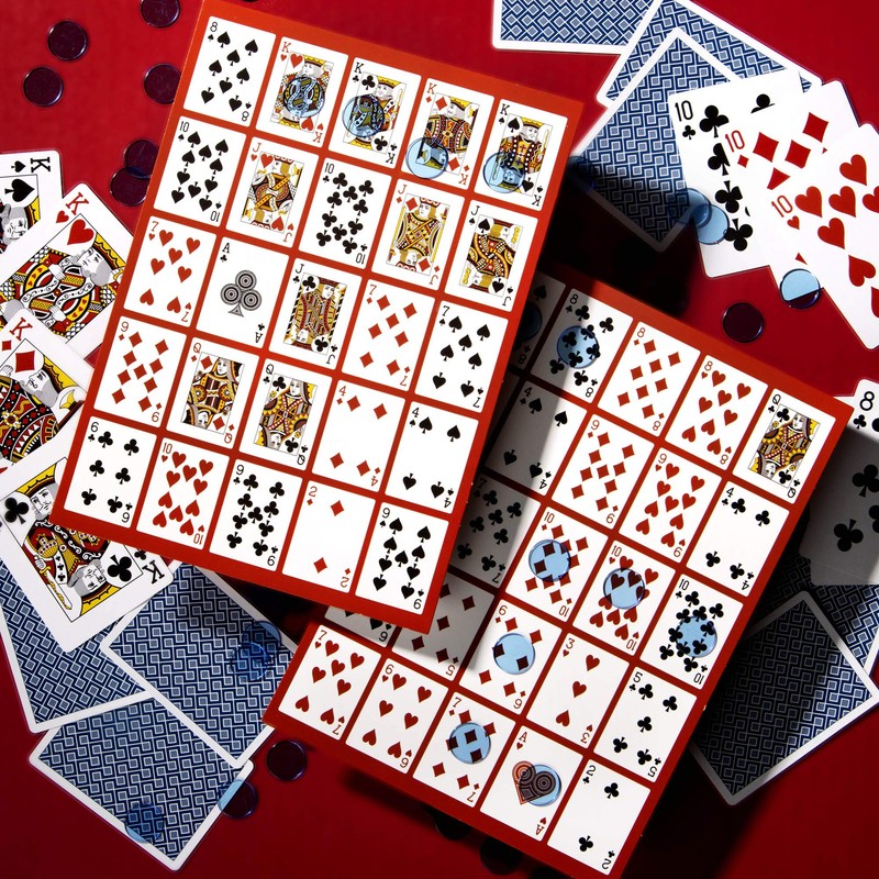 Want to spice up your game? Try one of the two variant games using poker rules. When each player can form a five card hand from a column or row on their card, compare hands - best poker hand wins!