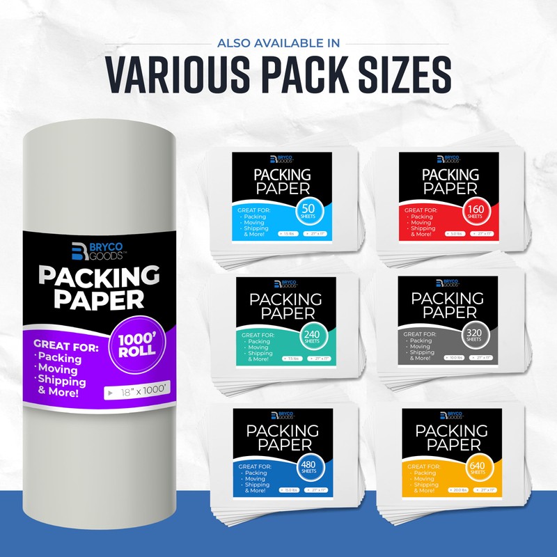 Bryco Goods Bryco Goods Newsprint Packing Paper Roll - USA Made - Newspaper Paper - Ideal for Wrapping and Protecting Fragile Items, Packaging, Shipping & Moving Supplies, Box Filler, Dunnage