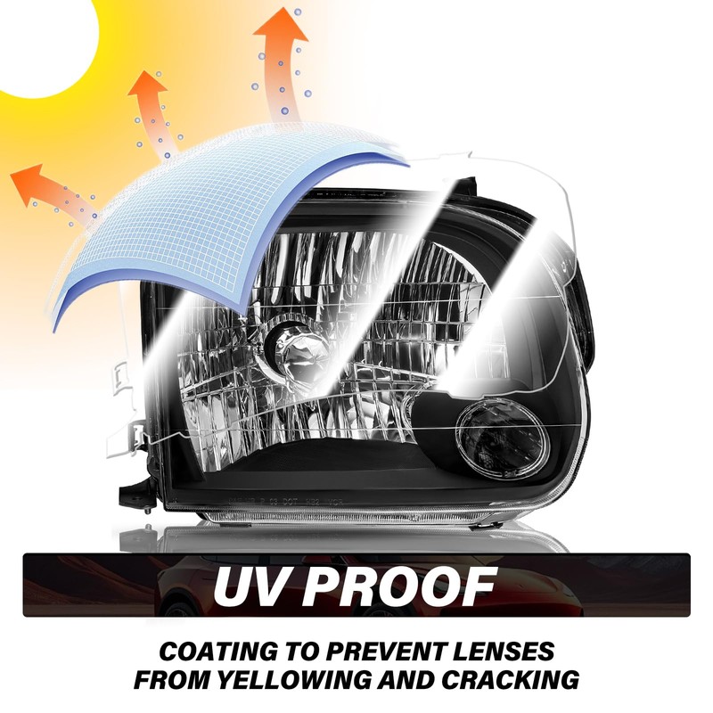 - 【DOT & SAE CERTIFIED】High-quality driver and passenger side halogen type headlights meet all DOT and SAE certified safety requirements. The upgraded housing is impact and heat resistant, ensuring better durability compared to other headlamps. Superior lenses have good light transmission, high toughness and excellent UV resistance to prevent yellowing and cracking