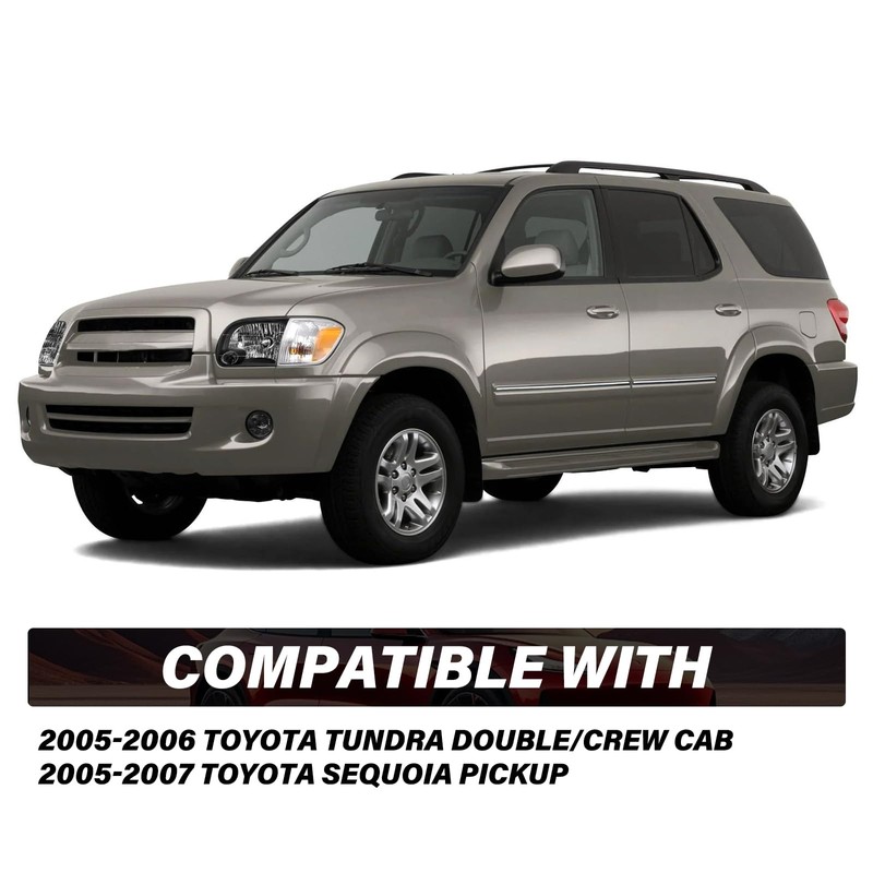 - 【VEHICLE COMPATIBILITY】Headlights Assembly Compatible With 2005 2006 Toyota Tundra Double / Crew Cab 2005 2006 2007 Sequoia Pickup. Bulb is included. High beam bulb type: H4; Low beam bulb type: H4; OEM Part Number: TO2502158, TO2503158; Partslink Number: 811500C031, 811100C031