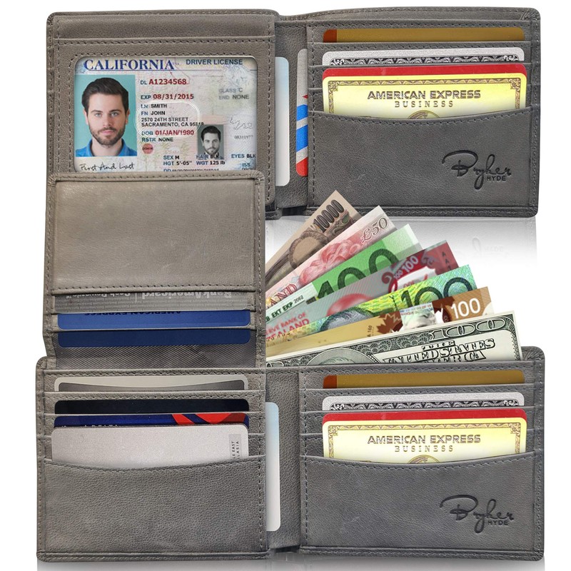 Bryker Hyde Executive 1 ID Window RFID Wallet for Men, Full Grain Leather, Bifold Top Flip, Extra Capacity Travel Wallet (Dark Gray - Distressed Leather, Super Capacity)