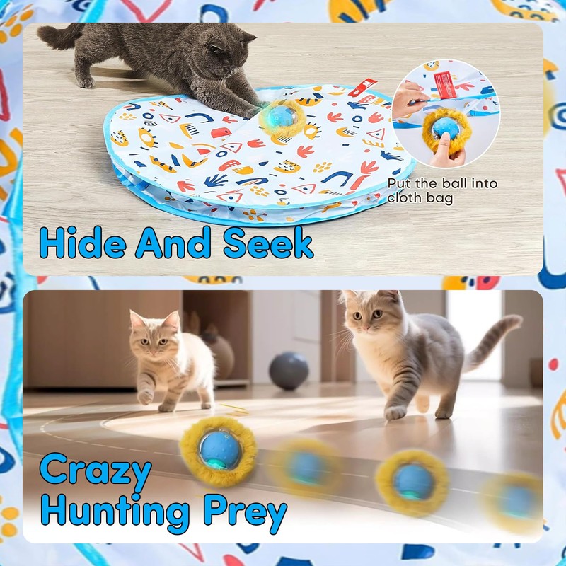• โœ… ใ€๐Œ๐ข๐ฆ๐ข๐œ๐ฌ ๐๐š๐ญ๐ฎ๐ซ๐š๐ฅ ๐‡๐ฎ๐ง๐ญ๐ข๐ง๐  ๐ˆ๐ง๐ฌ๐ญ๐ข๐ง๐œ๐ญ๐ฌใ€‘Designed to replicate the thrill of hunting, this interactive cat toy features a moving ball hidden under a play mat, sparking your catโ€™s curiosity and encouraging playful pouncing. Press and hold the switch for 3-5 seconds to turn it on. Charge fully before first use for optimal performance.