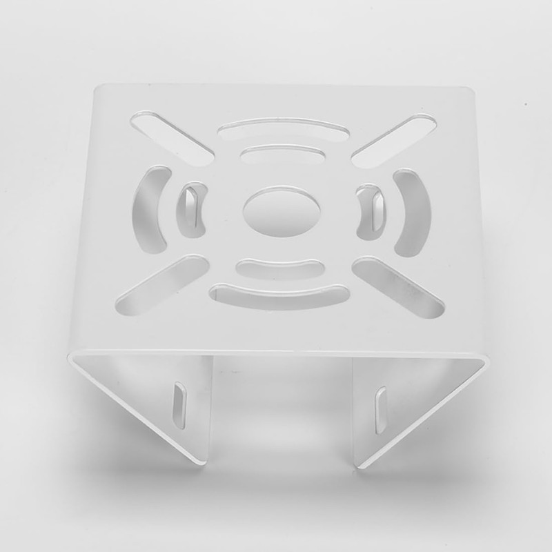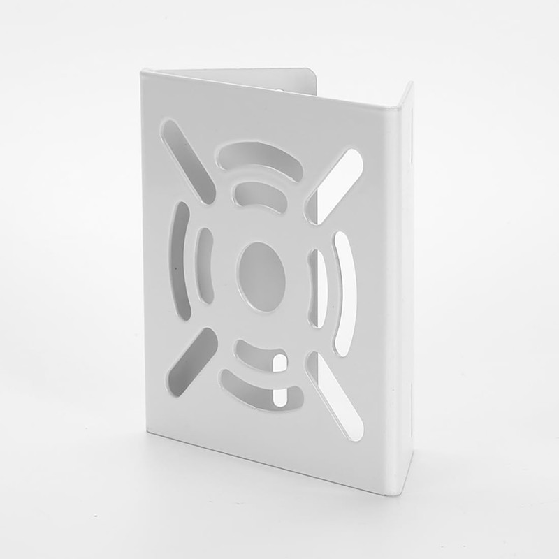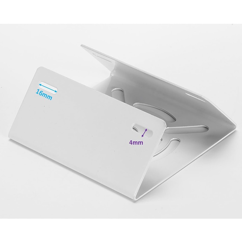 - Size: 4.2 x 4.1 inches (108 x 105 mm); Detailed sizes refer to the image diagram; Material: iron+spray paint; Weight: 7.9 oz (225 g); Color: White; Load Capacity: 15.4 lbs (7 kg); Model name: small panel bracket