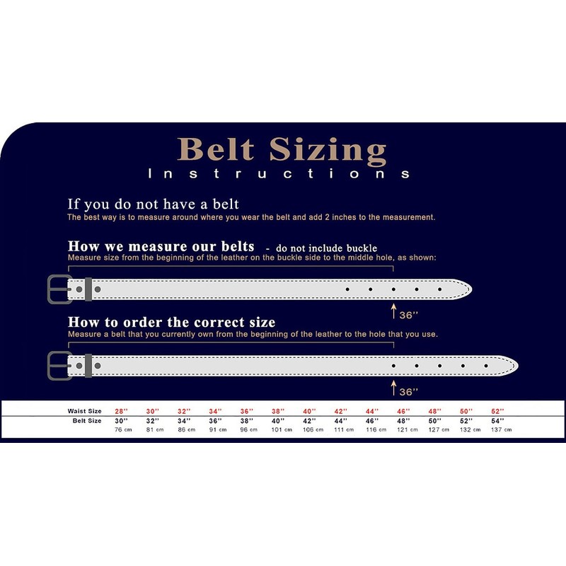 * ★★★ How to measure your Belt size ★★★: The best way is to measure around where you wear the belt and add 2 inches to the measurement.
