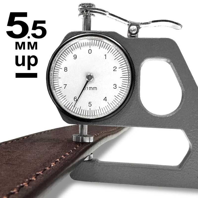 - * Heavy-Duty Construction: Made from thick 5.5–5.8 mm leather for durability. The strap is 1.5" (38 mm) wide and features 7 belt holes for maximum adjustment and comfort.