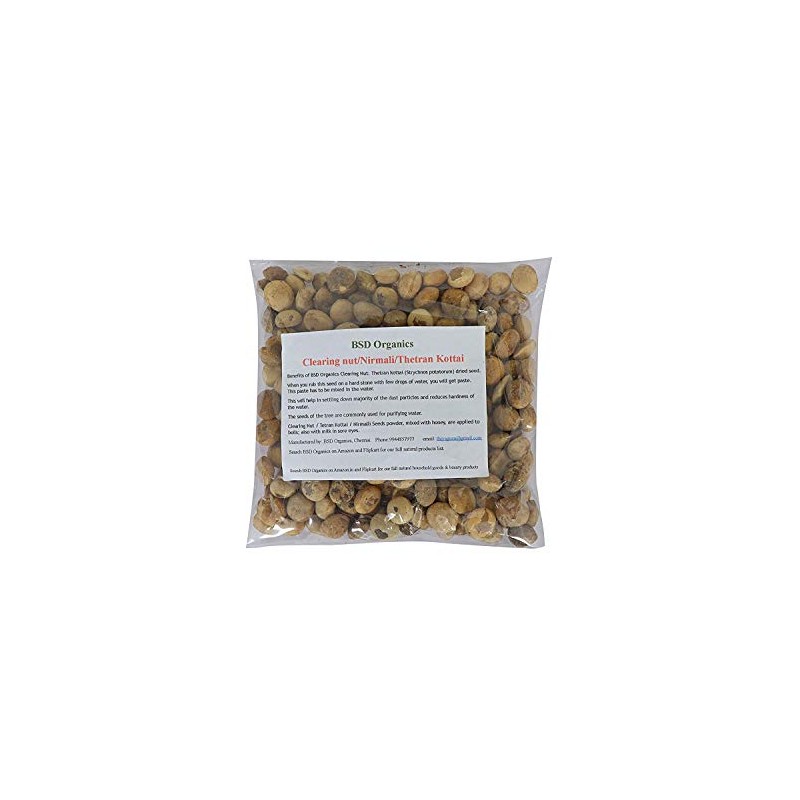 - Benefits of BSD Organics Clearing Nut: Thetran kottai dried seed. When you rub this seed on a hard stone with few drops of water, you will get paste. This paste has to be mixed in the water. This will help in settling down majority of the dust particles and reduces hardness of the water.