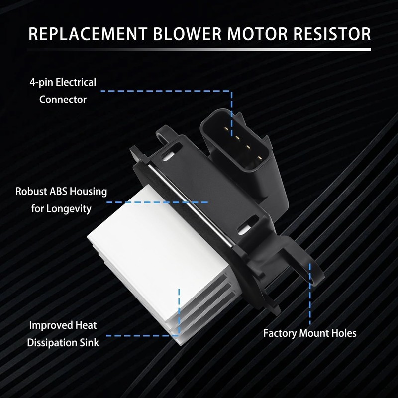 - 【REPLACEMENT BLOWER MOTOR RESISTOR】The AC Blower Motor Resistor controls the fan speed in your AC and heating system. If you can no longer adjust the air speed with your AC controls or your AC system no longer blows, chances are you need a new Blower Motor Resistor. It will Effectively return your vehicle's heating and cooling system to its original peak performance. The long-lasting design resists thermal fuse failure, overheating, and burnout