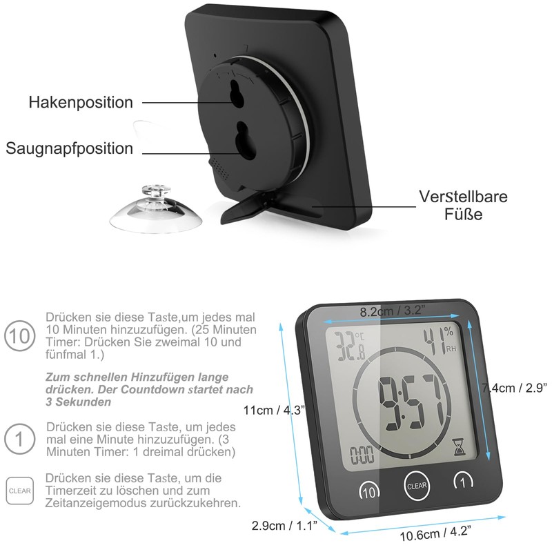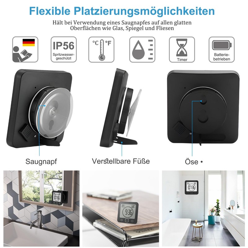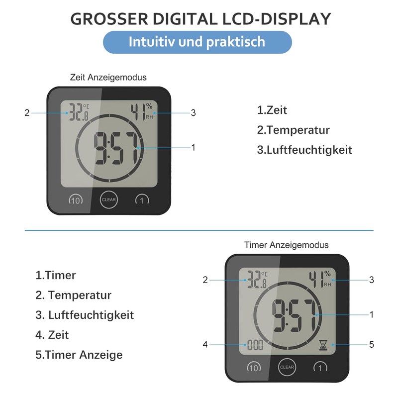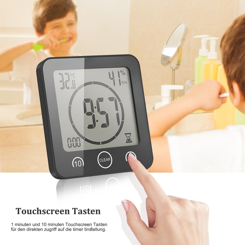 Bsdz Bathroom Clock, Shower Timer, Waterproof Wall Clock, Digital, Portable, LCD Digital Temperature Humidity Clock for Kitchen, Shower