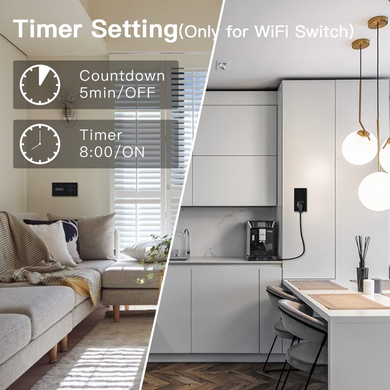 - Remote control: After downloading the free Smart Life or Tuya app, you can control your electrical devices anytime, anywhere from your phone, as long as a network is available. Suitable for people who cannot move very well and need easy access to turn a device on and off.